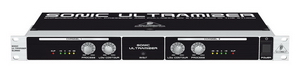 Энхансер Sonic Ultramizer SU 9920 имеет на каждом канале четырехсегментный светодиодный индикатор уровня выходного сигнала, светодиодный индикатор перегрузки входа, регуляторы глубины обработки низкочастотных и высокочастотных составляющих входного сигнала. Также есть переключатель (со встроенным светодиодным индикатором) обхода обработки (все на передней панели).
