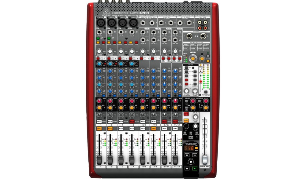4 USB выхода, FireWire интерфейс, USB-рекордер на 16 треков, микрофонный предусилитель и компрессор, 3-полосный эквалайзер, процессор эффектов, 4 стерео возврата aux