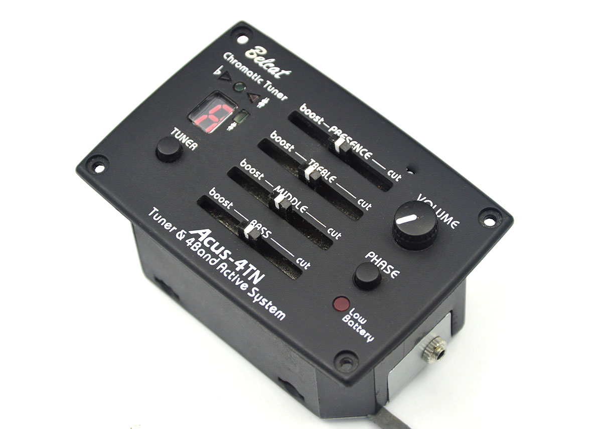 BELCAT ACUS-4TN - Активный звукосниматель для акустических и классических гитар с предусилителем , 4-х полосным графическим эквалайзером,регулировкой эффекта присутствия(presence),смещением фазы(phase),встроенным хроматическим тюнером и тонгенератором.Пьезодатчик OMEGA II.