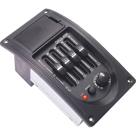 BELCAT OPUS-4SM - Активный звукосниматель для акустических,полуакустических и классических гитар с предусилителем(питание 9V- около 700 часов для нормальной щелочной батарейки),4-х полосным эквалайзером,регулировкой эффектов присутствия(presence) и смещения фазы(phase).Звукосниматель OMEGA II,упакован в блистер.