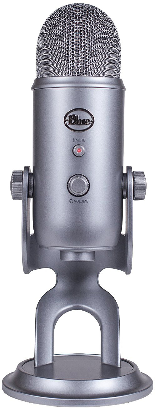 В микрофоне Blue Yeti установлен мощный аналого-цифровой преобразователь высокого класса, конвертирующий сигнал для обработки на компьютере. Наличие усилителя для стереонаушников позволяет контролировать работу в реальном времени. Возможности микрофона увеличивают, размещенные на корпусе регуляторы усиления, громкости, «мютирования» звука и переключатель диаграмм направленности.