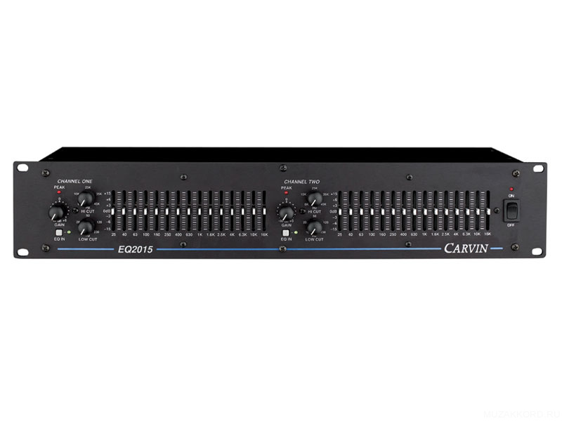 CARVIN EQ2015 - 2-х канальный, 2 х 15-полосный, 2/3 октавный графический эквалайзер. Активные фильтры. Входы/выходы XLR и ¼˝ Jack балансные/небалансные. Рекомендуется установка в рэковую стойку 19˝ х 2U.