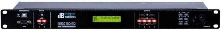 DB Technologies DSX2040 – это цифровая система управления акустическими системами, разработанная для туров, а также для стационарной установки устройства. В данной системе реализованы последние из существующих технологий – 40-битные процессоры с плавающей запятой и высокоэффективные 24-битные аналоговые конвертеры. DSP с высокой битностью (цифровой сигнальный процессор) предупреждает появление шума и искажений, вызванных ошибкой округления, распространённой среди 24-битных устройств с фиксированной запятой. Система также имеет полный набор параметров, включая уровни I/O (ввода / вывода), задержку, полярность, 8 полос эквалайзера на каждый канал, 31 полосу графического эквалайзера (GEQ) для входа, множественную секцию кроссоверов и полнофункциональные лимитеры. Точный частотный контроль достигается благодаря 1 Гц разрешающей способности. Входы и выходы могут быть маршрутизированы во множественных конфигурациях для выполнения любых требований. Управлять и настраивать систему