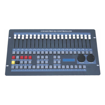 DIALighting DMX Console 360 - контроллер на 360 DMX каналов, 18 приборов по 20 каналов, 2 колеса управления Pan/Tilt, горячие клавиши. Все настройки легко контролировать через LED дисплей.