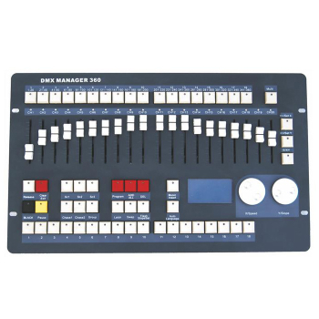 DIALighting DMX Console 360 mk2 - контроллер на 360 DMX каналов, 18 приборов по 20 каналов, 16 слайдеров, 2 колеса управления Pan/Tilt, горячие клавиши, LED дисплей, RS232 интерфейс.