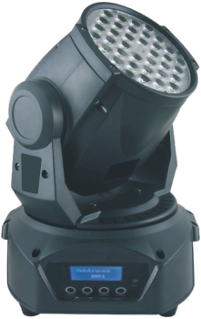 Вращающаяся голова, 36 светодиодов 3W CREE XP-E RGB (12R+12G+12B). Угол раскрытия 8°. Движение 8/16 bit, Раn 540° Tilt 240°. Электронный диммер 0-100%. Строб 0-10 вспышек в секунду. Управление: DMX512, звуковая активация, автоматический режим, master/slave.