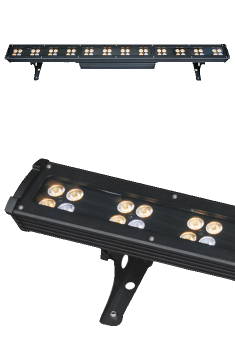 Прожектор, 48 белых светодиодов (12 cold white + 36 warm white). Электронный диммер 0-100%. Строб. Угол луча 25°. Управление: DMX512, звуковая активация, автоматический режим, master/slave. Питание: AC100-240V 50-60HZ. Габариты: 990*120*145 мм, вес:5,7 кг.