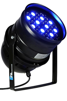 Прожектор LED Par, 36 высокомощных (3 W) светодиодов (12 красных + 12 зеленых + 12 голубых), RGB. Электронный диммер 0-100%. Очень быстрая функция стробирования. Малый нагрев и очень низкая потребляемая мощность. Управление: DMX512 5 каналов.