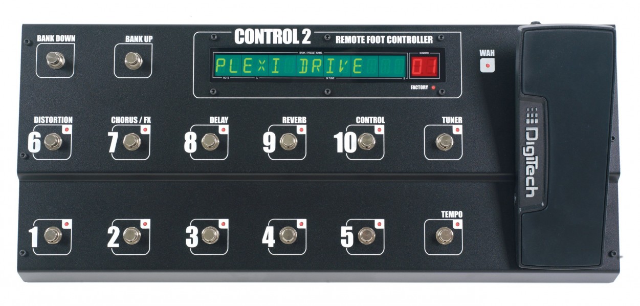 Наконец, у Digitech CONTROL 2 очень надежная конструкция, помогающая пережить суровые условия концертной работы: прочный наклонный металлический корпус, 14 переключателей и большой 14-символьный ЖК-дисплей.