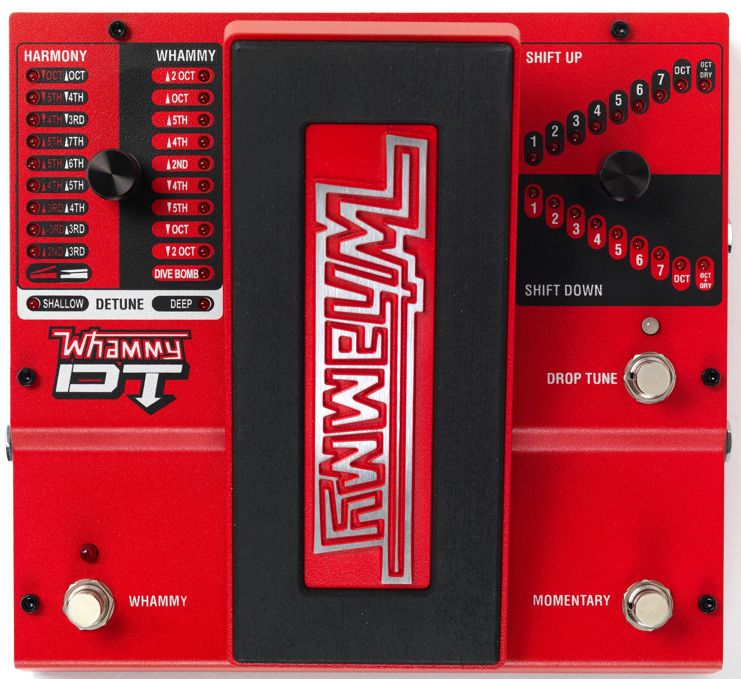 Whammy DT характеризуется моментальным ножным переключением изменения тона для создания эффектов типа "Hammer-On" и "Pull-Off". Гитаристы могут незамедлительно получать повышение или понижение нот тона во время игры нажав и удерживая переключатель, потом отпустив возвратить тон для драматического эффекта во время соло игры. Различные эффекты могут выбираться посредством двух кнопок и двойным набором светодиодных индикаторов. Процессор имеет 1/4" гитарный вход и выход, MIDI вход, который позволяет управлять педалью от внешних MIDI устройств и 9V DC адаптер. Whammy DT изготовлен в соответствии с требованиями живого исполнения с прочным металлическим корпусом и может использоваться с DIGITECH FS3X контроллером для добавления выразительности.