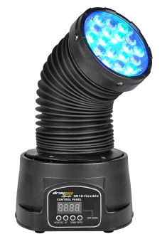 IW18-flexible — новая голова-wash от Dragon Effects. Малый вес (всего 3,5 кг!), габариты и приемлемая цена прибора делают его привлекательным для небольших инсталляций, маленьких клубов, дискотек, кафе. Функционально IW18-3-RGB- flexible является аналогом прибора IW18-3-RGB, только с более интересным дизайном. Световой поток образуется благодаря 18 мощных световым элементов, каждый из которых состоит из 3-ваттных диодов (6 красных, 6 зеленых, 6 синих). Плюс мощность каждого светового элемента усиливается благодаря специальной оптической системе. Небольшой размер прибора позволяет двигаться ему достаточно быстро. За счет смешения цветов RGB вы можете получить полный спектр красок. Приборы могут управляться как по DMX (особенно удобен режим 4-х каналов — Pan, Tilt, интенсивность/стробоскоп, цвет), так и выполнять самостоятельные программы. Предусмотрены макросы по цвету и позиции, функция Reset. Управление — 4 и 12 каналов DMX.
