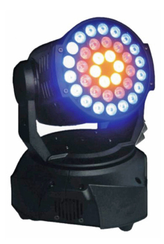 Вращающаяся голова, 36 мощных (3 Вт) светодиодов 3-in-1 (RGB). Раn 540° Tilt 270°. Электронный диммер 0-100%. Строб 0-10 вспышек в секунду. Управление: DMX512, звуковая активация, автоматический режим, master/slave. Питание: AC115-230V 50-60HZ.
