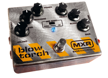 Бас гитарную педаль эффекта дисторшн отличает среди многих других то, что «мхр блоу торч» имеет достаточно гибкий и уникальный в своем роде эквалайзер, при помощи которого звучание баса и эффекта можно изменить совершенно радикальным образом. Если прибавить к этому, дополнительный трех позиционный переключатель, с дополнительным, функциональным переключателем среднечастотного диапазона, который сразу выделяет звучание бас гитары в среднечастотном спектре, делая звук баса ярче и помогая оптимально сбалансировать общее звучание инструмента. Управляя всей кухней педали, можно добиться традиционного и модернового звучания инструмента, применимого практически в любых направлениях и стилях музыки. Например, регулятор Blend позволяет вам управлять смешиванием исходного и искаженного сигнала педали, выводя звук в общем миксе мощного звучания бас гитары. Переключатель – Torch, находящийся на правой, внешней стороне педали, удобно включается носком ноги, при этом добавляя дополнительные +12дБ, увеличивая громкость звучания и дополнительно выделяя частотный спектр в звучании бас гитары.