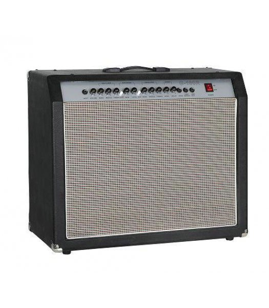 E-Wave G-100R - Комбо для электрогитар 100Вт, динамики 2Х12”, два 3-х полосн. эквалайзера на 2 канала (Clean/Drive) отдельные рег. громк., рег. чувствит. (Gain) и кнопка (Max Gain). Эффект: delay (с рег. уровня). Входы: CD, ножной переключ (Foot Switch). Выходы: Линейный, на внешний динамик
