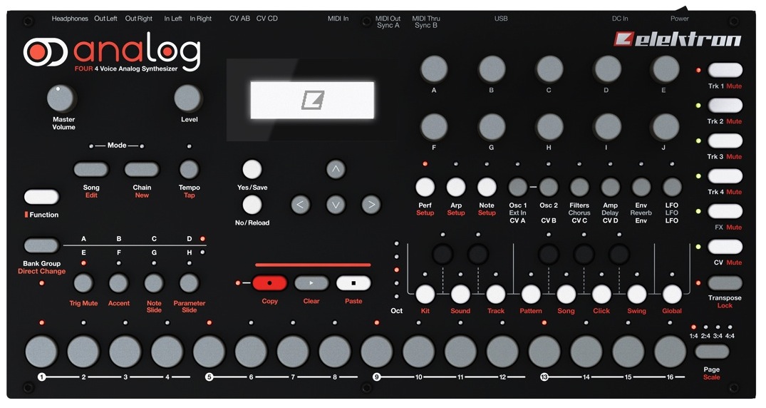 Это не только устройство для создания удивительных звуков, Analog Four может заставить и другое оборудование петь. Благодаря выходам CV/GATE и DIN sync, Вы можете управлять другим винтажным аналоговым оборудованием, используя всю мощь секвенсора Elektron. Функции, подобные арпеджиаторам и локам параметров, вдохнут новую жизнь в старое оборудование и заставят любой модульный синтезатор по-настоящему вернуться к жизни.