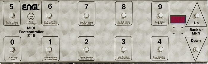 ENGL Z15 - Миди, 15-кнопочный ножной переключатель, металл, 2-x сегментный цифровой LED индикатор каналов,128 пресетов, 16 миди-каналов.