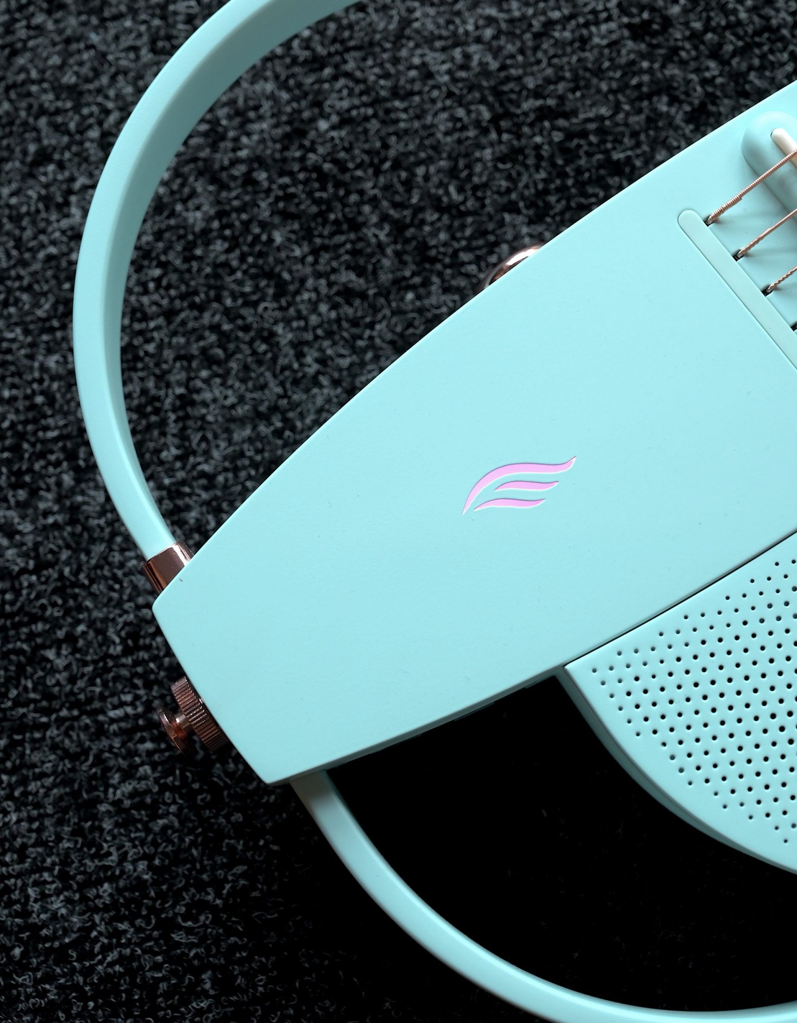 Enya NEXG 2/BL в матовой голубой отделке имеет компактный корпус высотой 38 дюймов (96,5 см). Обечайка и задняя дека выполнены из прочного карбона, стойкого к перепаду влажности и температур. Накладка на гриф из карбона оснащена укороченной мензурой 23,75 дюймов и 20 ладами без маркеров.