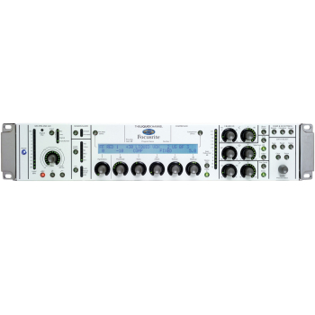 Процессор FOCUSRITE Liquid Channel выполняет обработку на основе операции «свертки». Для вычислений используется DSP SHARC. Предлагается имитация звучания 40 классических микрофонных предусилителей и 40 классических компрессоров. В моделях учитывается набор органов управления и особенности поведения оригинальных устройств. Отклик воссоздается с учетом динамики (технология называется Dynamic Convolution — «динамическая свертка», и лицензирована у компании Sintefex), для чего используется обширный набор семплов, снятых с прототипов при различном уровне сигнала. Прибор одноканальный, имеет микрофонный предусилитель с возможностью выбора трансформаторного или бестрансформаторного режима работы (для оптимального согласования с различными микрофонами), фантомное питание (+48 В), возможность переворота фазы сигнала, фильтр верхних частот (отключаемый, частота среза по уровню -6 дБ переключается между 75 и 120 Гц, крутизна характеристики 12 дБ/окт). В набор эффектов входят имитация предусилителей (с генератором гармоник, преимущественно второй, а также третьей и пятой), компрессор и трехполосный эквалайзер. Два таких прибора можно объединять для обработки стереосигнала. Возможно сохранение 99 пэтчей. Аналого-цифровые и цифро-аналоговые преобразователи поддерживают частоты дискретизации 44,1, 48, 88,2, 96, 176,4 и 192 кГц, разрядность 24 бита.