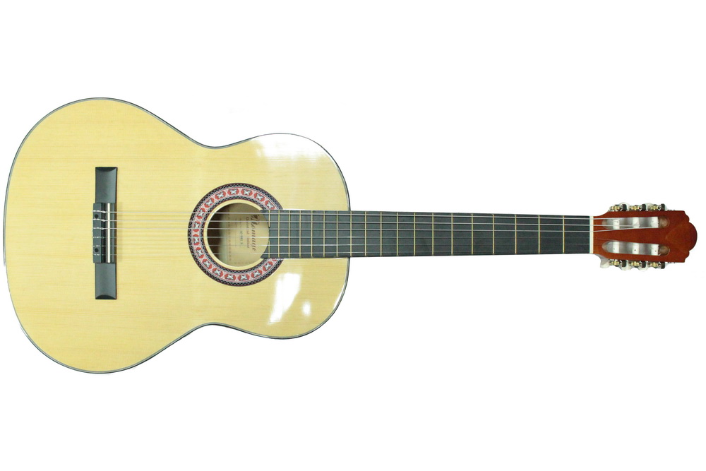 HOMAGE LC-3000 - Классическая 6-струнная гитара 1/4 30". Верхняя дека - ламинат ели, задняя дека и обечайки - липа, гриф- клен, накладка грифа - фанера, бридж - клен, колковая механика - хромированная, окантовка - 5-слойная, цвет - натуральный.