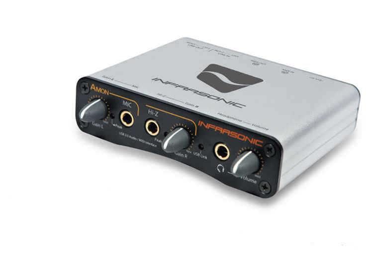 INFRASONIC AMON – двухканальный USB 2.0 аудио интерфейс, с высококачественным микрофонно/инструментральным предусилителем, имеет на борту MIDI I/O на стандартных разьемах.