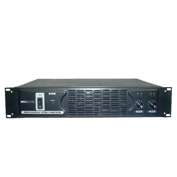 На задней панели – разъёмы XLR и параллельные ДЖЕК, обрезной фильтр ограничения 30 Гц, тумблер включения клип-лимитера, тумблер на три положения включения режимов усилителя (ПАРАЛЛЕЛЬ/МОНО – СТЕРЕО – МОСТ), три выходных разъёма для подключения кабелями акустических систем (КАНАЛ А – МОСТ – КАНАЛ В), биметаллический прерыватель перезагрузки усилителя.