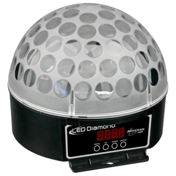 JB Systems LED Diamond — очень компактный и лёгкий световой прибор с шестью трёхваттными светодиодами внутри. Огромное количество лучей, двигающихся в ритме музыки, великолепно смотрится на танцполе. Полусфера выполнена из прозрачного пластика, благодаря чему светится изнутри, создавая дополнительный эффект. LED Diamond от JB Systems может работать автономно, в режиме «Master-Slave» или управляться по DMX-512.
