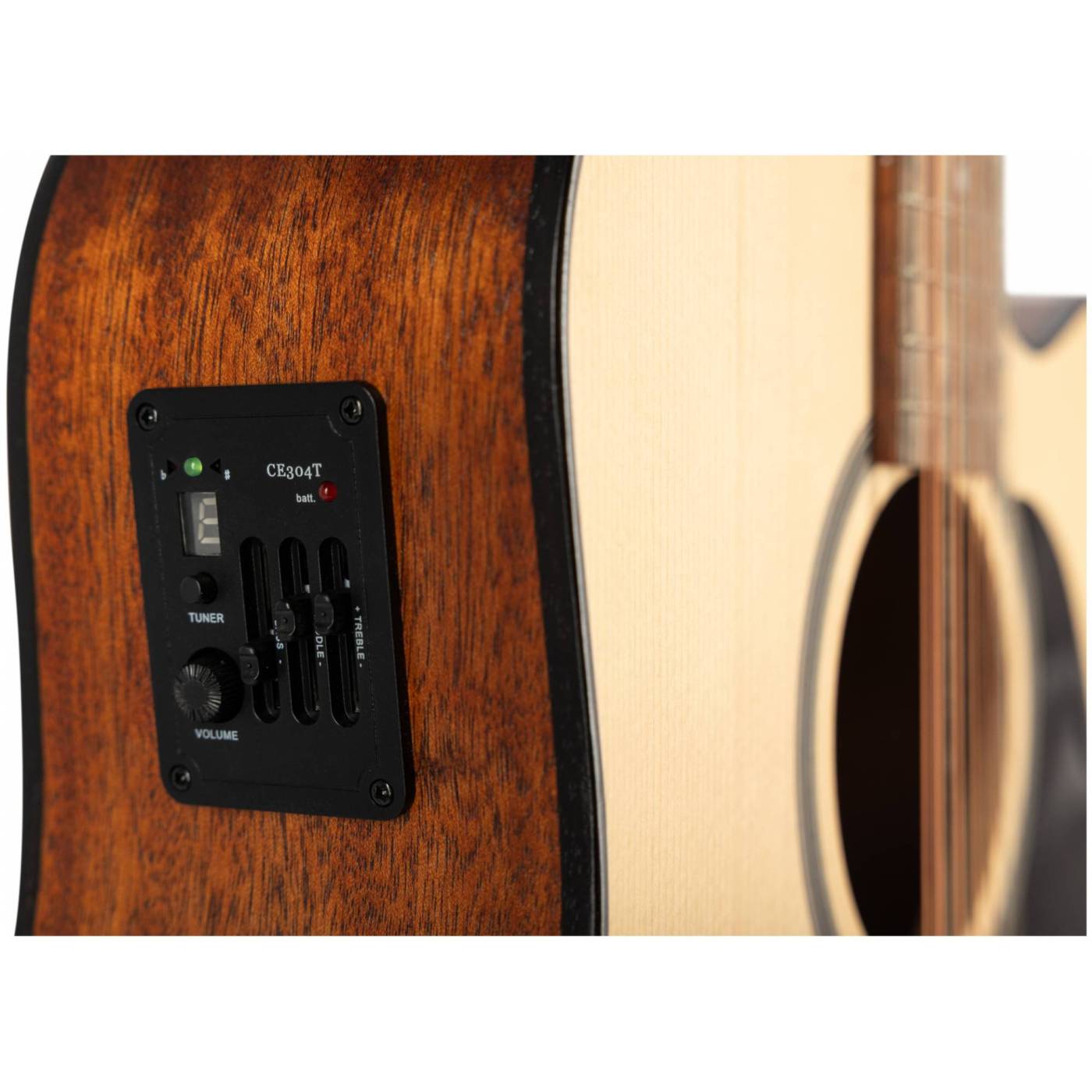 Модель JET JDEC-255/12 OP это 12-ти струнная электроакустическая гитара с активным звукоснимателем с трехполосным эквалайзером и встроенным тюнером. Форма корпуса Дредноут (Dreadnought) с вырезом. У инструмента современное, ультратонкое покрытие Open pore, ставшее настоящим трендом у производителей гитар. Дека с таким покрытием становится легкой и отзывчивой, что очень нравится музыкантам. Визуально инструменты с покрытием Open pore отличаются ясно видимыми и ощущаемыми ложбинками. Инструменты с таким покрытием очень приятны на ощупь - они имеют бархатистую текстуру, тактильно кажутся натуральнее и естественнее. Этот же эффект подчеркивается разрезом древесины верхней деки, который раскрывает оригинальную структуру волокон древесины.