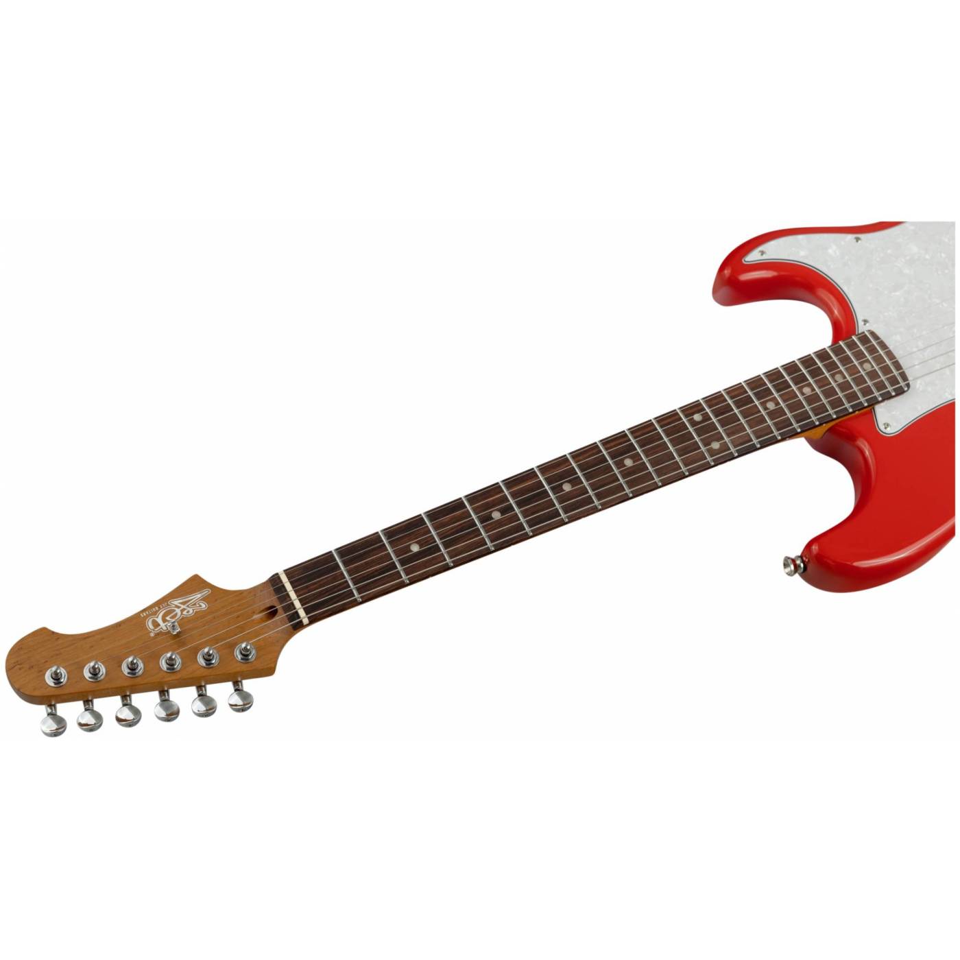 Накладка на гриф выполнена из палисандра, фурнитура хром, фиксированное тремоло, 1 хамбакер черного цвета, перламутровая накладка и металлическая ручка управления – в JET JS-400 HT RD все продумано до мелочей.