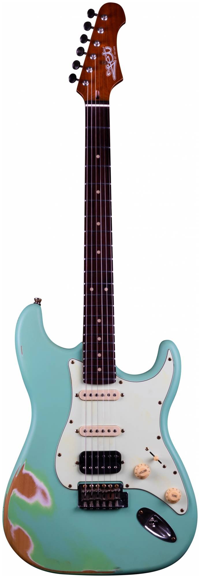У JET JS-400 Relic SFG гриф выполнен из печеного клена (roasted maple), а накладка их палисандра. Сам корпу и фурнитура специально состарены.