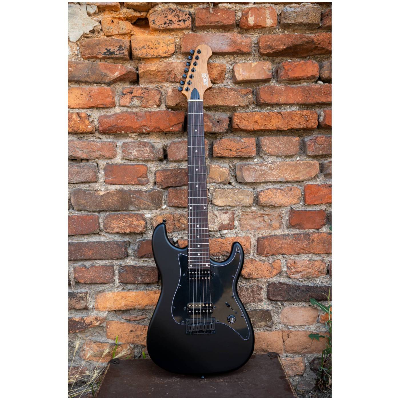 JET JS-407 MBK R - это 7миструнный инструмент с палисандровой накладкой на гриф и 2мя хамбакерами без крышек, гитара выполнена в черном матовом цвете.