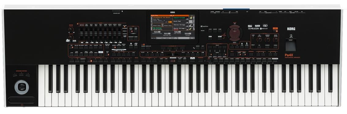 KORG Pa4X-76 - многофункциональная аранжировочная станция. KORG Pa4X-76 представляет собой аранжировочную станцию профессионального уровня. Производитель, компания Korg, позиционирует эту серию аранжировочных станций как флагманскую модель в популярной серии PaX. Обновленная модель получила усовершенствованный тон-генератор EDS-X, который способен обеспечить инструмент реалистичным звучанием самых разных музыкальных инстурментов. В состав установленных тембров входит большое количество звуков высокой детализации. Кроме этого станция имеет прочный корпус из алюминия, интуитивно понятное управление и инновационные функции, которые сделают работу музыканта предельно простой и приятной. Станция имеет 76 клавиш полувзвешенного типа с динамической чувствительностью, есть функция послекасания. Дисплей станции ёмкостный, сенсорный с диагональю 7 дюймов. Полифония составляет 128 голосов. Программная память содержит более 1800 музыкальных тембров, более 100 наборов барабанов и 512 тембров для пользователей. Есть система редактирования установленных тембров и ударных. Музыканты могут не тольско создавать, записывать и сохранять свои композиции, но и импортировать файлы разных форматов включая WAV, AIFF и SoundFont. Для создания музыки доступно более 500 стилей автоаккомпанемента в разных музыкальных жанрах, 1248 ячейки для сохранения пользовательских стилей, функция Chord Sequencer для воспроизведения и записи последовательностей аккордов, и многие другие функции. Особенности: 76 полувзвешенных клавиш с динамической чувствительностью, а также функцией aftertouch.