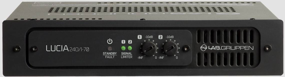 Lab.gruppen Lucia 240/1-70 - компактный инсталляционный усилитель класса D, мощностью 240 Вт при 70 В /16 Ом и 120 Вт при 100 В со встроенным цифровым сигнальным процессором. Инновационная система усиления LUCIA (Localized Utility Compact Intelligent Amplification) от Lab.gruppen обладает превосходным качеством звучания и гибкостью в подключении к децентрализованным аудиовизуальным установкам. Все элементы (питание, обработка сигнала, управление и входы/выходы) удобно расположены на корпусе усилителя. Модели LUCIA имеют простой интерфейс, управляемый цифровой прошивкой, а также надежный и мощный выходной каскад Lab.gruppen.