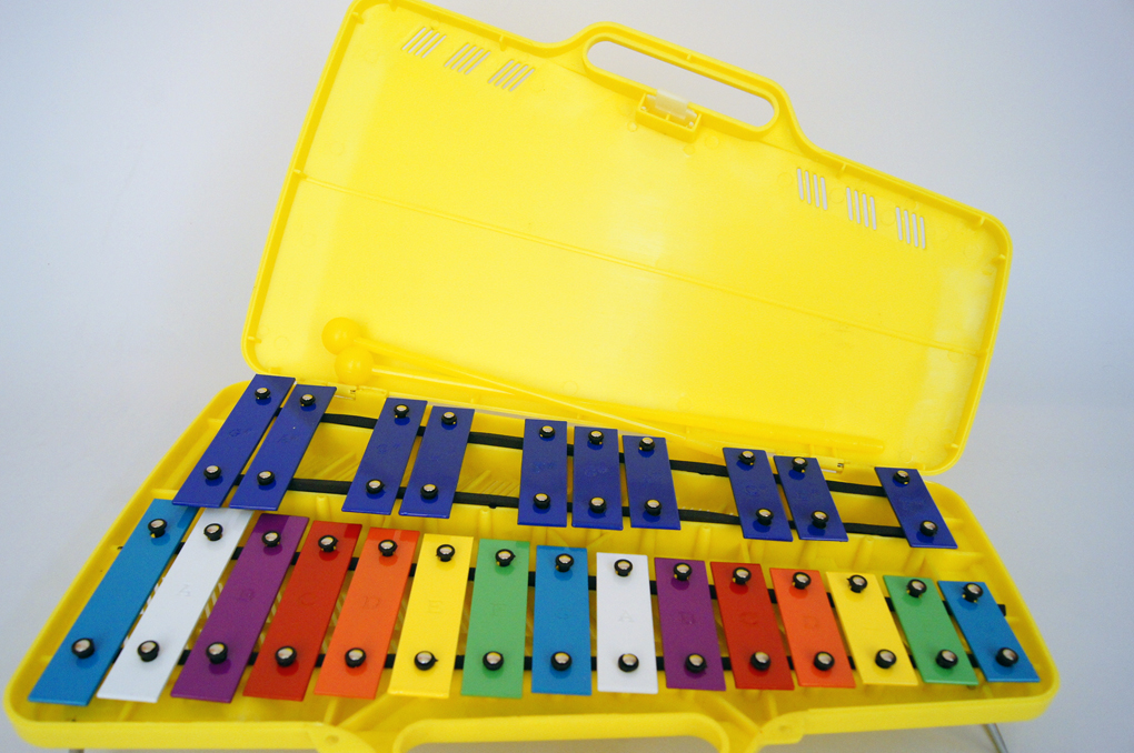 Металлофон детский диатонический,12 разноцветных нот, на деревянной пластине, металлические пластины.