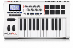 Axiom Pro 25 имеет 28 MIDI-назначаемых клавиш, которые обеспечивают полное управление во время работы. Более того клавиатура оснащена 8 чувствительными к скорости нажатия триггерами, созданными по технологии Trigger Finger. Управление такими параметрами, как фильтры, эквалайзеры, панорамирование происходит по средством 8 вращающихся контроллеров. Также клавиатура имеет кнопку Data/Octave, колеса Pitch Bend и Mod, кнопки Aftertouch и двойные назначаемые разъемы для педали. Подключение внешнего MIDI устройства осуществляется и с помощью USB, а также стандартных MIDI входов/выходов.