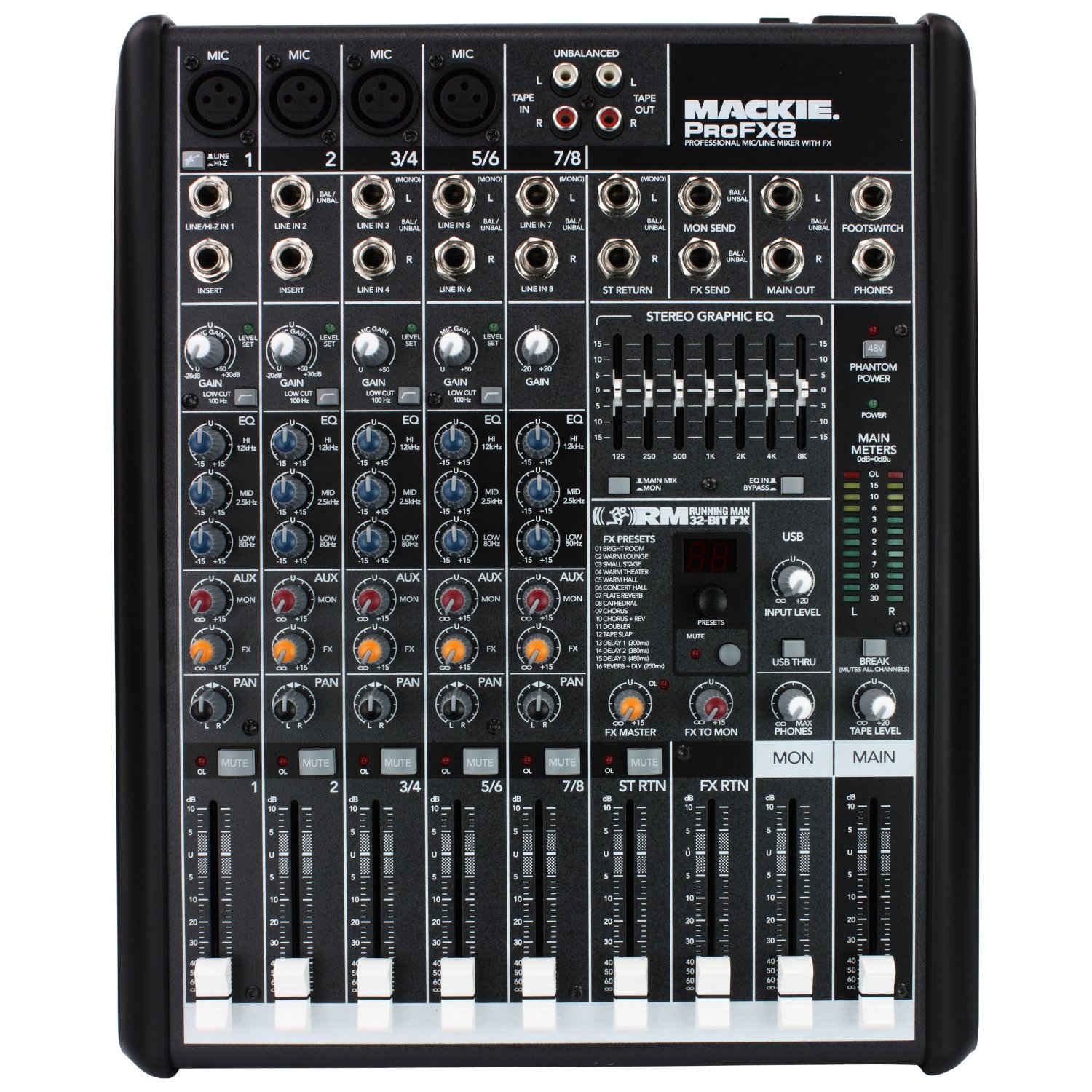 MACKIE ProFX8 - Новый профессиональный компактный микшерный пульт компании MACKIE доступный по цене великолепного качества с оригинальным звучанием характерным для этого бренда. Удовлетворит требования любого музыканта как для живой (концертной) работы, так и для записи через USB-порт. Новый процессор эффектов не оставит к себе равнодушными начинающих певцов и опытных вокалистов. 8-канальный микшер с 32-Bit процессором эффектов, USB и 7-и полосным эквалайзером.