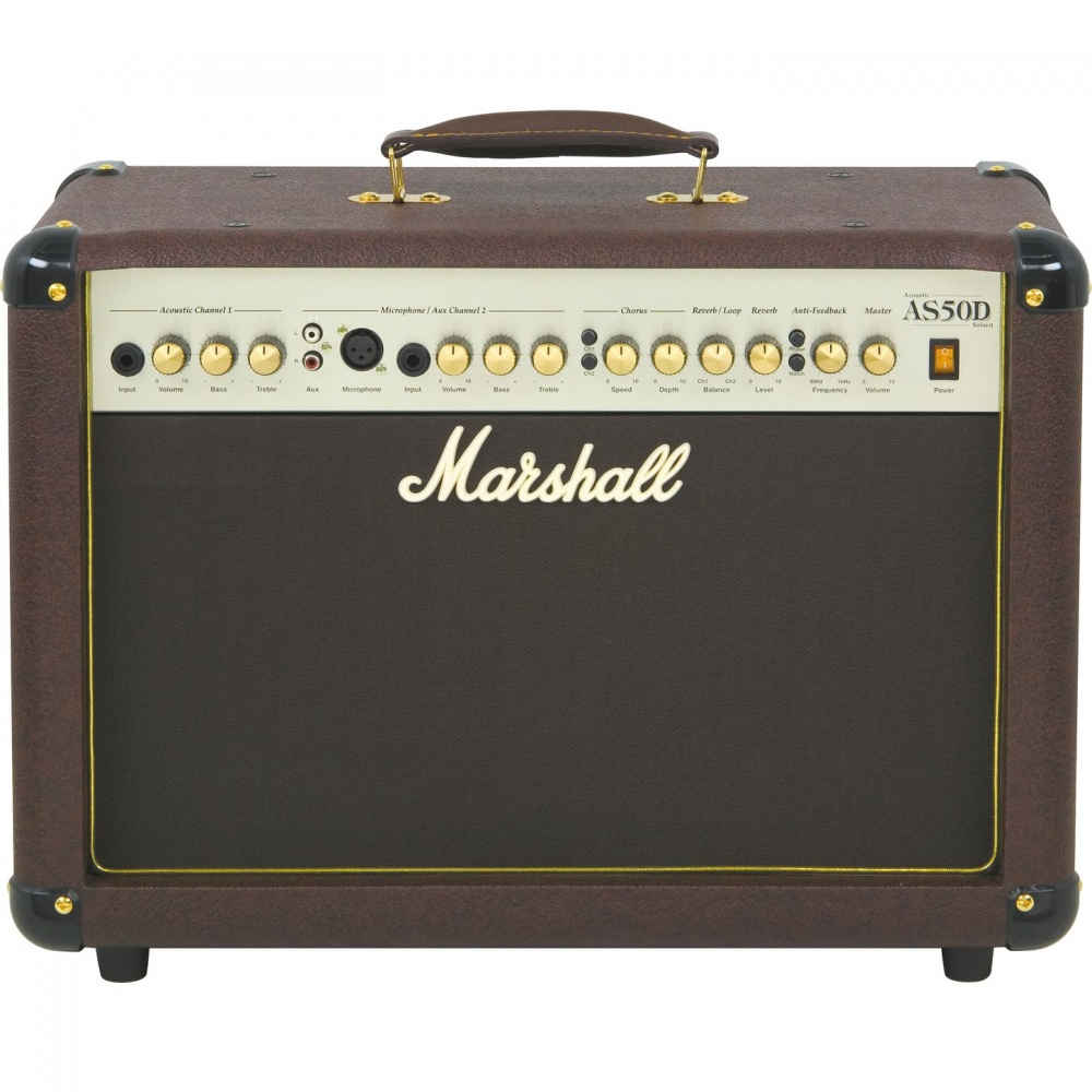 MARSHALL AS50DC LIMITED 50W 2X8'' ACOUSTIC COMBO - комбоусилитель для акустических инструментов, имеет 2 канала: инструментальный и инструментально-вокальный с разъемами для микрофона, инструментов и аудиоустройств через AUX. Для работы со звучанием встроены цифровые эффекты студийного качества. Универсальный комбоусилитель работает с магнитными и пьезо звукоснимателями, с динамическими и конденсаторными микрофонами.