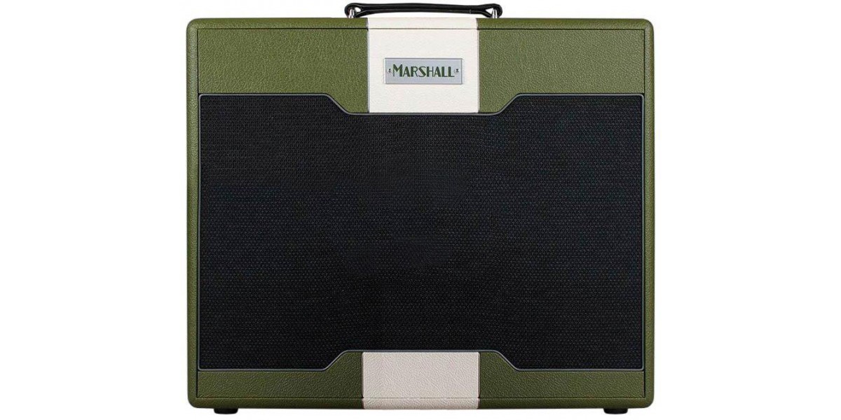 Комбоусилитель, "голова" и акустический кабинет покрыты зеленым винилом с белой полосой по центру. Еще одной эксклюзивной особенностью является цветная версия легендарного винтажного "прямоугольного" логотипа Marshall.