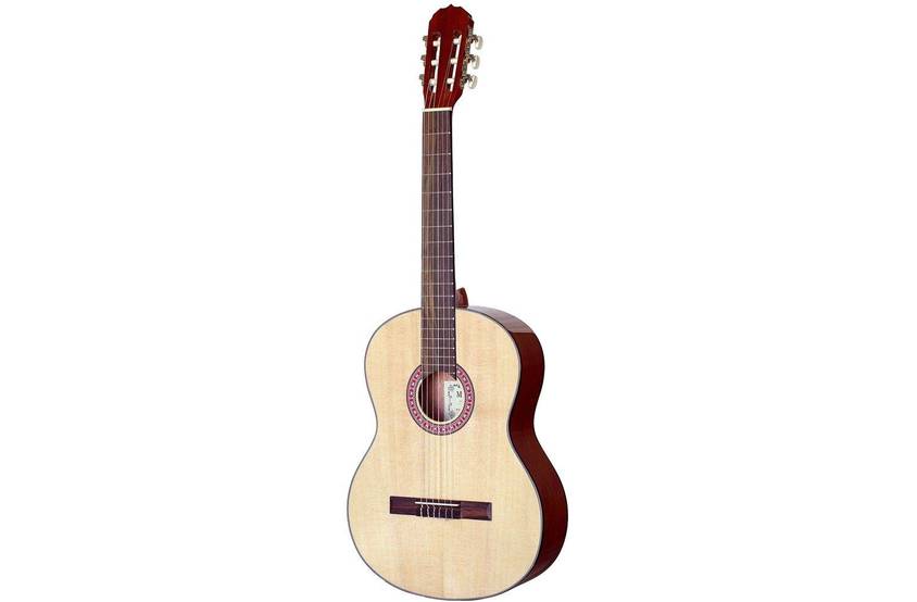 Классическая гитара, верхняя дека - липа, нижняя дека и обечайка - липа гриф - катальпа, накладка - клён, порожек - клён, цвет натуральный, производство Китай