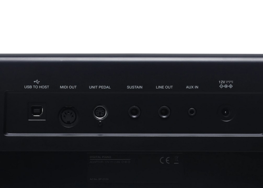Входы / выходы: USB-B MIDI и аудио, MIDI-порт выход, наушники 1/4" и 1/8", вход 1/8", выход 1/4", педальный блок, сустейн.