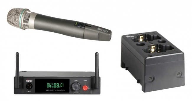 MIPRO ACT-2401/ACT-24HC/MP-80 - Цифровая радиосистема с ручным аккумуляторным микрофоном и зарядным устройством. 12 предустановленных каналов, режим сканирования и обхода Wi-Fi частот.