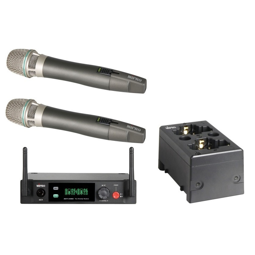 MIPRO ACT-2402/ACT-24HC*2/MP-80 - Цифровая радиосистема с двумя ручными микрофонами и зарядным устройством.