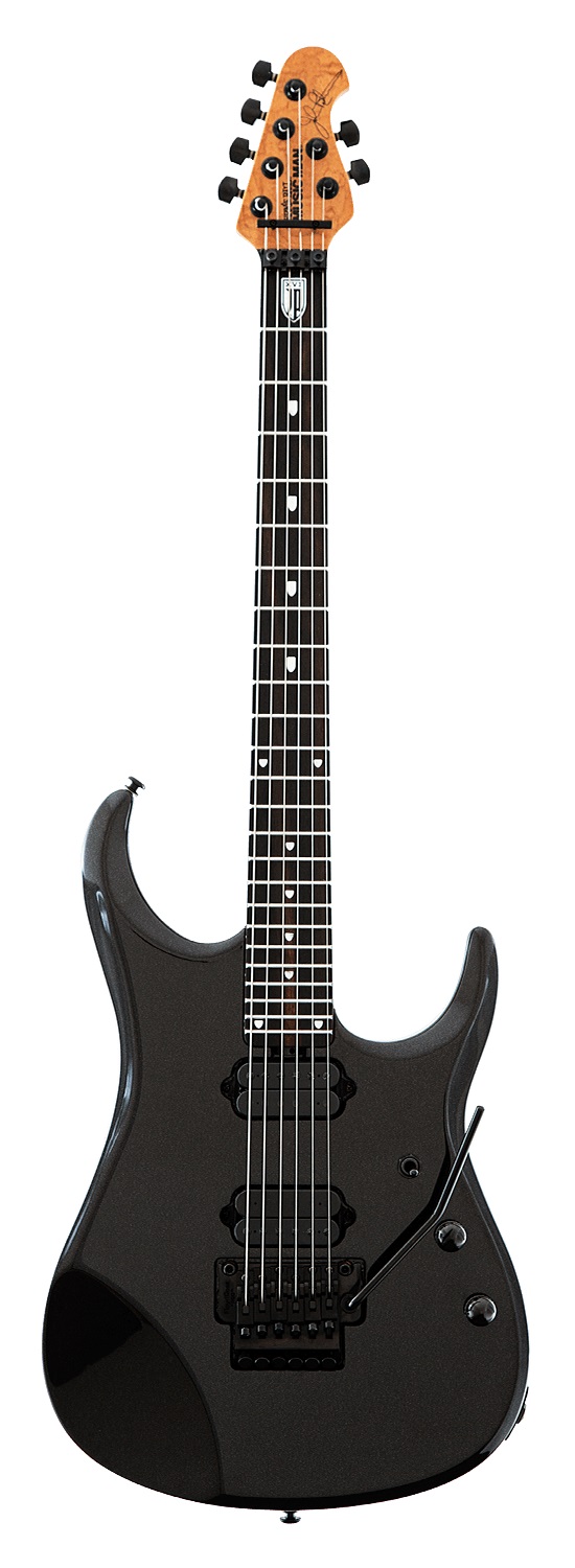 MusicMan G78456 представляет собой сочетание оригинальной модели Music Man John Petrucci и более поздних гитар из серии Ball Family Reserve (BFR). В число ее особенностей входит облегченная дека из липы с глянцевым покрытием Black Lava, новой системой плавающего тремоло Floyd Rose 1000 Pro, а специальная впадина для предплечья обеспечит вам множество часов комфортной игры. Первый лад отмечен логотипом JP16, а все последующие изготовлены из нержавеющей стали. Сверхтонкий гриф изготовлен из обожженного клена, а накладка – из эбенового дерева. Пара хамбакеров DiMarzio Sonic Ecstasy, а также регулятор громкости “push/push” с усилением в 20+ дБ обеспечат гитаристу испепеляющий тон.