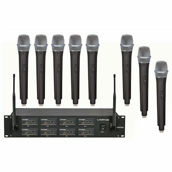 OPUS UHF 808HH - радиосистема с восемью ручными вокальными микрофонами. В комплект входит стационарный приемник рэкового исполнения в металлическом корпусе, восемь ручных вокальных передатчиков. Оптимальное решение для караоке вечеринок, ведения шоу-программ и презентаций.