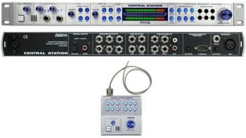 Мониторный коммутатор Central Station сочетает в себе пассивный коммутатор аналоговых сигналов, переговорное устройство и 24-разрядный цифро-аналоговый преобразователь, поддерживающий частоты дискретизации 44,1, 48, 88,2, 96, 176,4 и 192 кГц. Есть две пары симметричных аналоговых входов (джеки на задней панели), пара несимметричных линейных входов (RCA на задней панели), электрический (RCA) и оптический (Tos-Link) входы формата SPDIF, встроенный электретный микрофон, микрофонный вход (XLR на задней панели), кнопка активизации микрофонного входа (на задней панели), регулятор уровня микрофона, кнопка переговоров, разъем для педального переключателя (дублирует кнопку переговоров), кнопки выбора цифрового входа (оптический или электрический), кнопки выбора пары входов для главной секции и регулятор уровня сигнала с несимметричных входов, кнопки выбора пары входов для переговорной секции и регулятор уровня сигнала с несимметричных входов, пара тридцатисегментных светодиодных индикаторов уровня сигнала, кнопка сброса перегрузки, кнопка калибровки индикаторов, пара главных симметричных линейных выходов (джеки на задней панели, на эти выходы регулятор громкости не действует), пара симметричных линейных выходов переговорного микса (джеки на задней панели), три пары симметричных линейных мониторных выходов (джеки на задней панели), пара выходов для наушников с индивидуальными регуляторами громкости, совмещающими функции кнопки выбора источника сигнала, и светодиодными индикаторами выбора источника сигнала (главный сигнал или переговорный микс), переключатели активизации каждой пары мониторных выходов, переключатель заглушения мониторных выходов, переключатель суммирования в моно (для мониторных выходов), переключатель аттенюатора (примерно на 20 дБ, для мониторных выходов), пассивный регулятор общей громкости мониторных выходов, индивидуальные подстроечные регуляторы уровня мониторных выходов, светодиодный индикатор питания, разъем (девятиконтактный D-Sub на задней панели) и переключатель (на задней панели) активизации дистанционного управления, разъем питания (на задней панели).