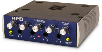 Presonus HP4 - четырехканальный усилитель для наушников. В общей секции есть пара симметричных входов (стерео) и пара симметричных сквозных выходов на 1/4 джеках. Последние подразумевают подключение студийных мониторов, для чего прибор имеет регулятор выходного уровня и кнопку заглушения. Каждый канал имеет выход для наушников (джек на передней панели) и регулятор громкости. Есть общая для всех каналов кнопка переключения стерео/моно. Диапазон частот 10Гц - 50кГц. Сигнал/шум выхода наушников >95 дБ, сквозного выхода >115 дБ. Уровень нелинейных искажений <0.002%. Мощность каждого выхода для наушников 150 мВт. Питание осуществляется от внешнего сетевого адаптера. Размер 1/3 рэка. Вес 1,5 кг.