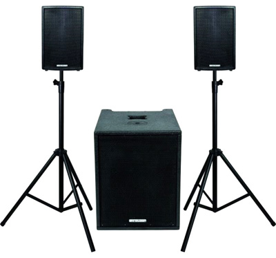 Активный комплект из двух сателитов и сабвуфера, мощность RMS 700Вт.