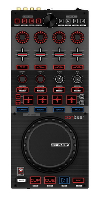 Модульный контроллер Contour фирмы Reloop, позиционируется, как контроллер для работы с ПО Traktor PRO. С помощью одного контроллера можно управлять любой из четырех дек, переключаясь между ними на лету. Стандартная конфигурация включает в себя: ноутбук с ПО, два контроллера Contour и микшер.