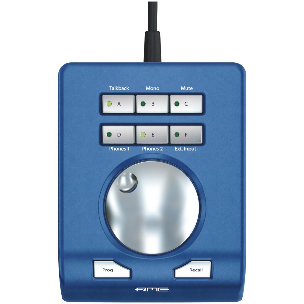 Проводной пульт дистанционного управления в твердом металлическом корпусе с одним большим скроллом и двумя кнопками для аудио интерфейсов Fireface UFX/UCX. Он предоставляет один большой поворотный регулятор, клавишу для сохранения и вызова настроек уровня сигнала и семь свободно программируемых клавиш (все семь со светодиодными индикаторами). Благодаря этим органам управления можно настраивать практически все функции. Необходимо лишь просто назначить все часто используемые функции на клавиши управления.