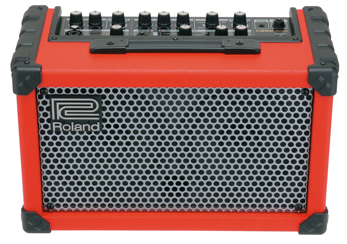 Roland CUBE-ST (Black) - гитарный комбо. Два высокоэффективных неодимовых динамика диаметром 16,5 см. Питание - от 6 батареек АА (максимум - 15 часов непрерывного использования) или от адаптера питания. Два канала: первый для гитары или другого инструмента второй - для микрофона или линейного сигнала. 2-полосный эквалайзер, задержка и реверберация для канала Mic/Line. Цвет - красный.