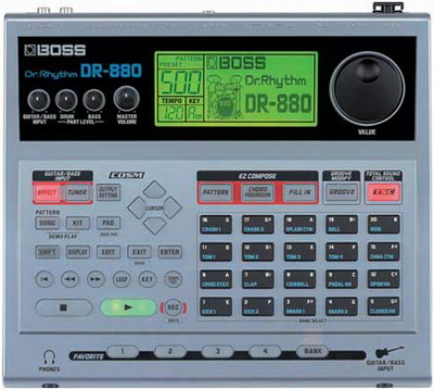 DR-880 - ритм-машинка новой школы, загруженная новыми звуками знаменитой библиотеки Roland SRX, плюс там собрана прошибающая коллекция собственных звуков.